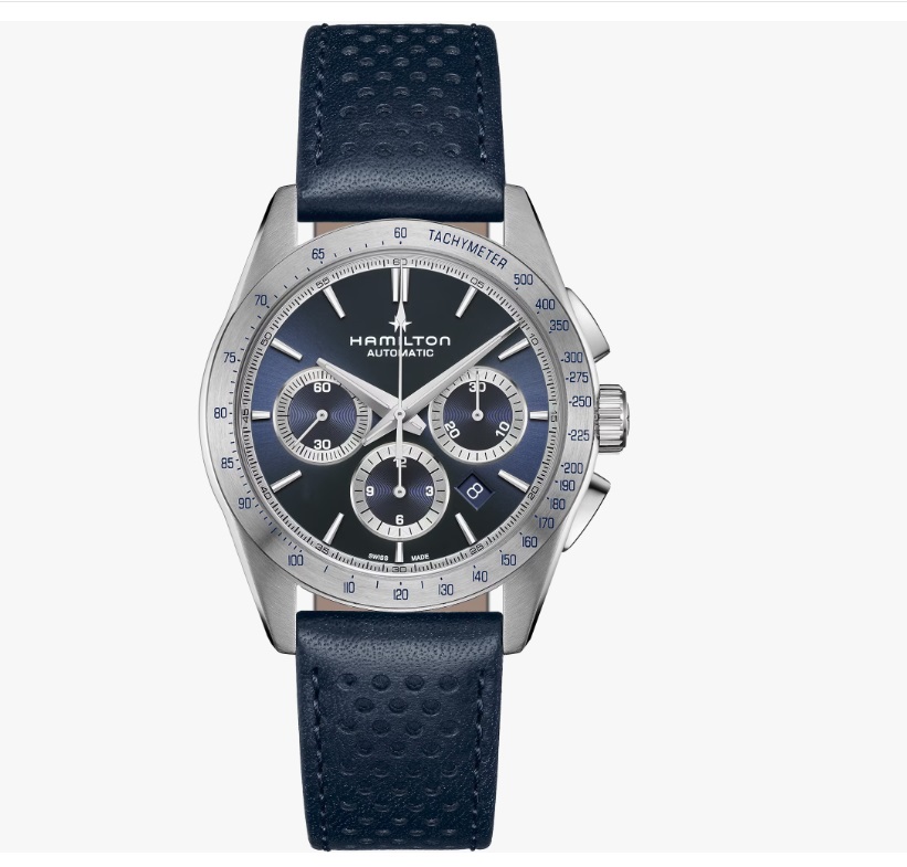 Pensata per chi ama l’equilibrio tra stile e funzionalità, la linea Jazzmaster Performer offre un look sporty-chic accattivante. Animato dal movimento cronografo automatico H-31 con riserva di carica da 60 ore, questo Jazzmaster Performer Automatic Chronograph presenta una cassa in acciaio da 42 mm messa in risalto da un elegante quadrante blu e un cinturino in pelle blu traforata, ispirato alle corse automobilistiche.